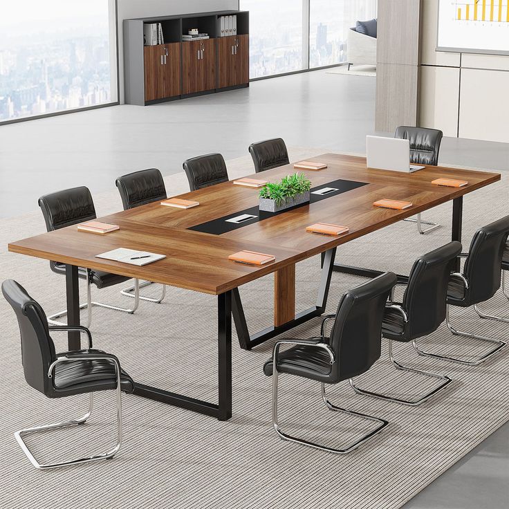 Luxury Executive Conference Table – Modern Wooden Boardroom Table with Metal Base